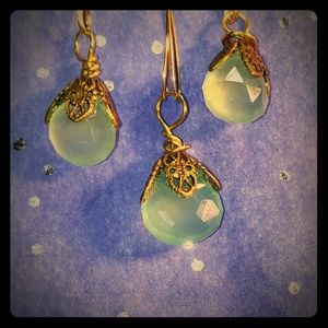 Artisan Handcrafted Beautiful Translucent Chalcedony Gemstone Briolette Earrings and Pendant Set in Robins Egg Blue.
