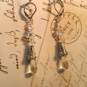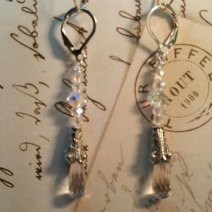 Artisan Handcrafted Gorgeous, Sparkling Quartz Crystal Earrings with Swarovski Crystal Accent Beads.