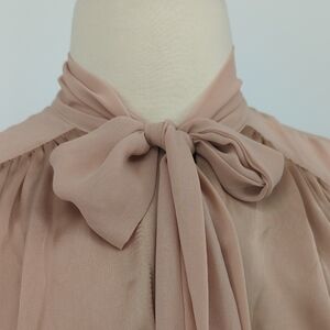 01444 Kenneth Cole Satin Chiffon Bow Top Blouse Pink Size XL