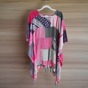 0145/ Pink batik Pattern Poncho, Short kaftan, Swim Cover Up.