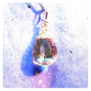 Artisan Handcrafted Rainbow Quartz Pendant. Eye-Clean and Gorgeous Concave Faceted Gemstone.