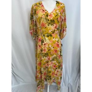 SANDRA DARREN YELLOW FLORAL PRINT DRESS