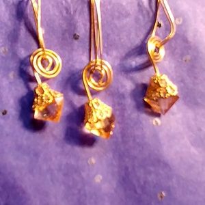 Artisan Handcrafted Brazilian Citrine Gemstone Square Faceted Pendant and Earrings Set. Beautiful Cut and Sparkling Gemstones.