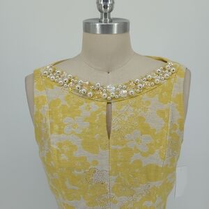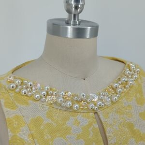 01566 Tahari Floral Pearl Sequins Sheath Dress Yellow size 8P preppy wedding
