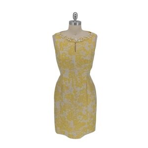 01566 Tahari Floral Pearl Sequins Sheath Dress Yellow size 8P