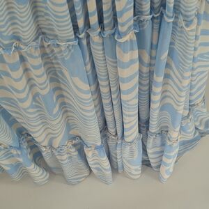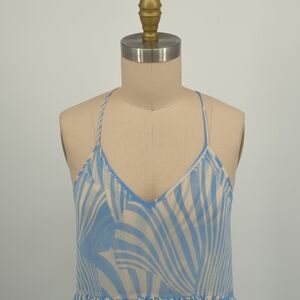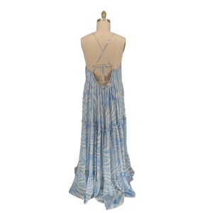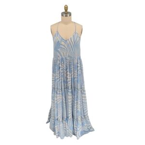 01584 Misa Striped Zebra Chiffon Maxi Dress Blue Ivory Size Medium bohemian
