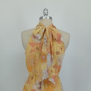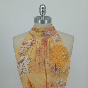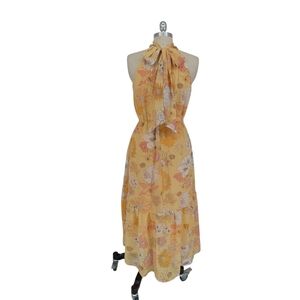 01594 Eliza J Floral Halter A Line Dress Yellow Size 10 preppy summer wedding
