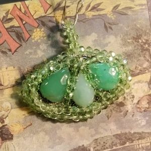 Artisan Handcrafted Beautiful Green Australian Chrysoprase and Swarovski Crystal Pendant. Sparkling in the Sunlight and a Very Versatile Piece of Jewelry for Any Occasion.