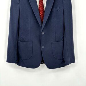 01.ALGO jacket blazer sport coat knit stretch two button unlined navy blue M