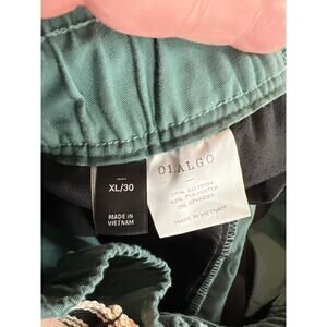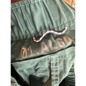 01.Algo mens size XL green pants in excellent condition. Attached belt. Waist is 17 1/2” across. Inseam is 28”.