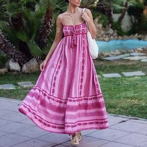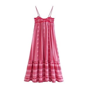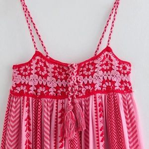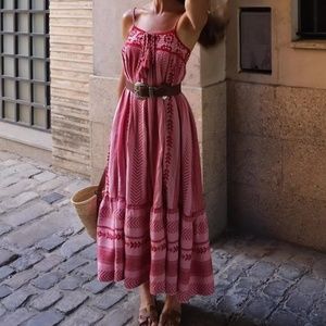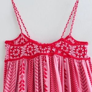02 Boho Crochet Ruffle Hem Cami Midi Dress