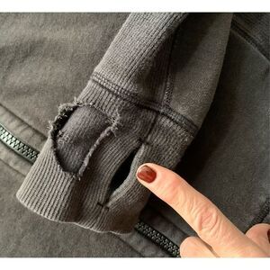 AMAZING CONDITION except a small tear near one of the thumb holes!! Tons of great use left in it!!! See photos!!