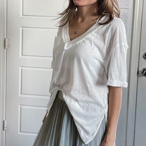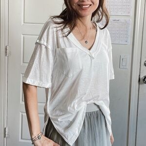 021 Black V neck Pocket Raw Detail Short Sleeve Oversized Tee
