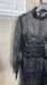 Lined with removable slip. Sheer sleeves and neckline. Button closure at sleeve cuffs and neckline.
