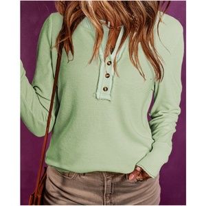 022 Raw hem Textured Button Long Sleeve Casual Top