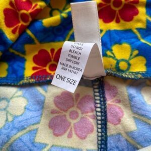 0239 LuLaRoe Size OS Leggings Blue and Yellow Box and Flower Print New