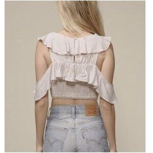 4S13NNA V Neck Ruffled Stripped Cold Shoulder Cropped Top Size XL NWT