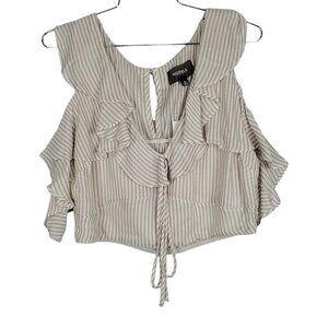 4S13NNA V Neck Ruffled Stripped Cold Shoulder Cropped Top Size XL NWT