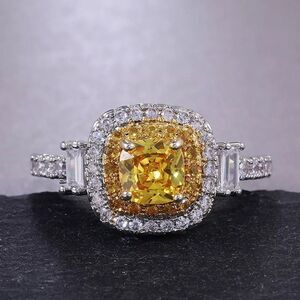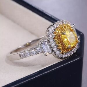 ❤️027❤️ 3Ct Canary Diamond 14k White Gold Engagement Statement Ring