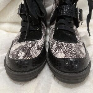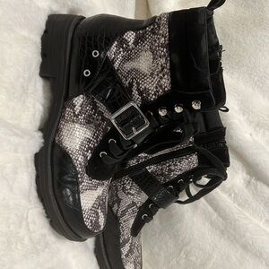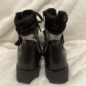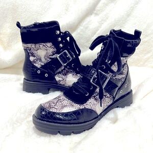 029. BOOHOO SNAKE & CROC CHUNKY COMBAT BOOTS Size 39/8.5
