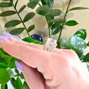 Size 9 Sterling Silver Pink Kunzanite Ring . Metal: Sterling Silver . Stone: 12X10Mm Oval Kunzanite . Width : 15.4 Mm . Appx Weight: 6.8 Grams . Finish: Rhodium