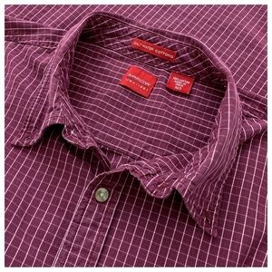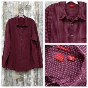 #03 Arrow Burgundy Wine White Check Collared Button Down Shirt Top XL Tall XLT