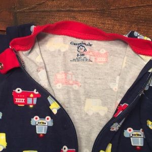 Garanimals footie pajamas, Carter’s gray onesie (3 month size), and bon bebe dino onesie. All like new condition.