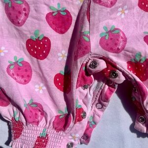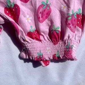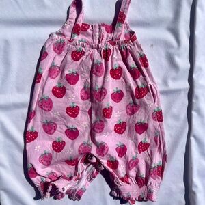 Strawberry patterned 100% cotton romper. Lightweight and very cute.