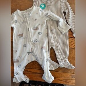 Carters Adorable footies with farm animal design. Soft and comfortable fabric.