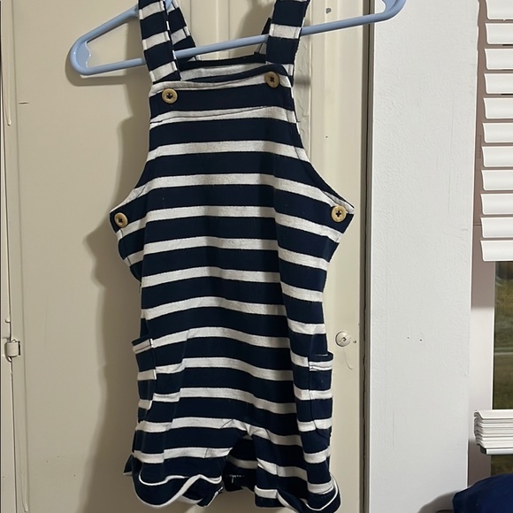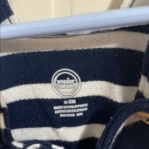 Worn once boy 0-3 month romper blue and white striped with buttons