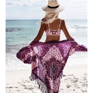 030 Boho Fuchsia Pink Tassel Kimono Cover up