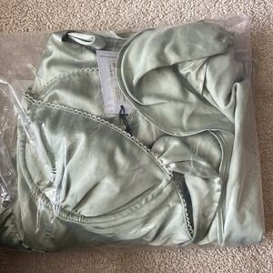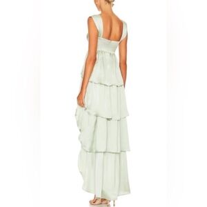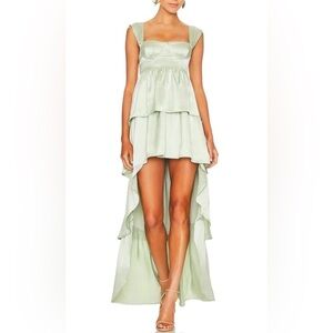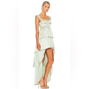 0306 - Corset High Low Maxi Satin Charmeuse Fog Green Dress