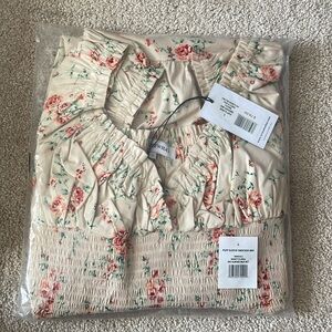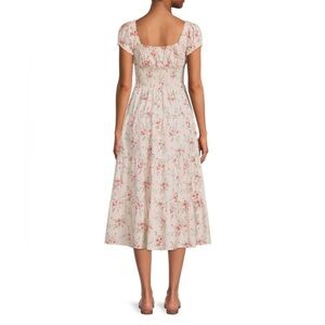 0306 - Puff Sleeve Smocked Midi Dress Dainty Floral Almond Milk
