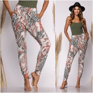 031 Ivory, Rust, & Gray Animal Print Leopard Soft Jogger Pants