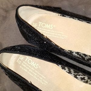 0328 Toms Sequined Open Toe Wedges, Black, Size W10. Pre-owned in Great Condition!! NCT-20