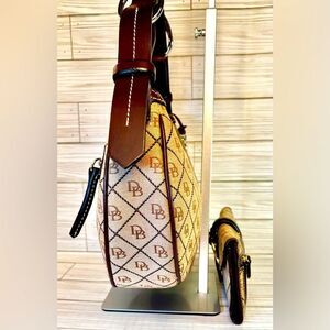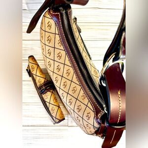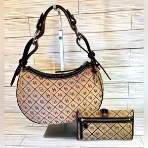 Dooney &Bourke Vintage DB Tan& Brown Canvas W/ Leather Trim Bag& Wallet Set