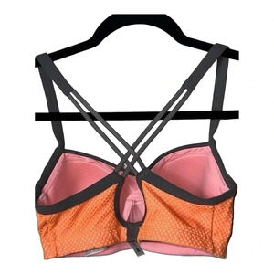 Keywords: Victoria's Secret, sports bra, orange, 32D, high support, strappy back, breathable, wireless, full coverage, activewear, gym, yoga, organ mesh, strapless.