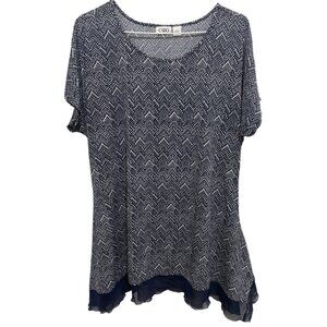 0389 Cato Soft&Stretchy Loose Fit Sheer Hem Short Sleeve Print Tunic