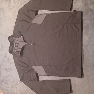 Beautiful pullover in a heathered grey and with silvery inserts. Skechers Performance is in black ⚫️ going down the right sleeve.