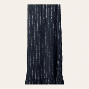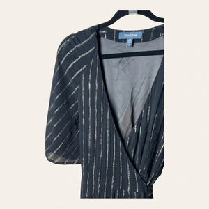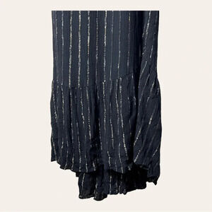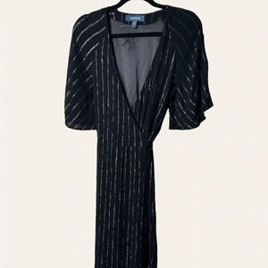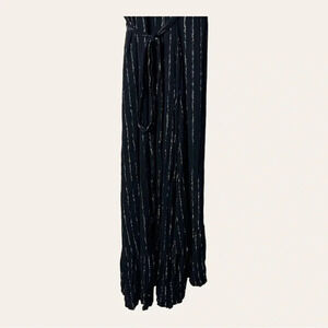 0408. MODCLOTH WRAP DRESS MAXI LENGTH BLACK WITH GOLD/SILVER IN COLOR STRIPES