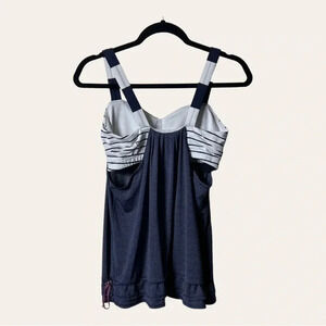 DETAILS: BUILT IN BRA; PADLESS, CAN PUT OWN PADS IN IT THOUGH; STRAPS WIDE; STRIPES; DRAW STRING AT BOTTOM