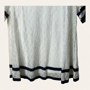 DETAILS: CROCHET SHEER TOP OUTTER SHELL; SPAGHETTI STRAP TOP UNDER ALL WHITE; ROUND NECKLINE; SHORT SLEEVE