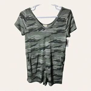 0426W. BE STAGE CAMO ROMPER SIZE LARGE GREEN IN COLOR SHORT SLEEVE