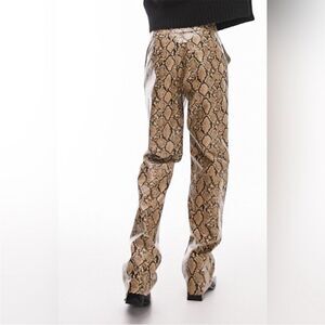 New Topshop Snakeskin Print Straight Leg Faux Leather Pants Size 6