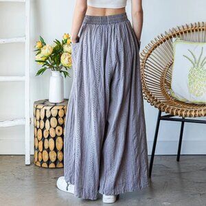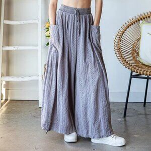 Oli & Hali Mineral Washed Wide Leg Lavendar Eyelet Knit Pants NEW Size XL