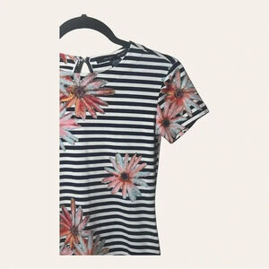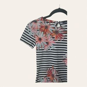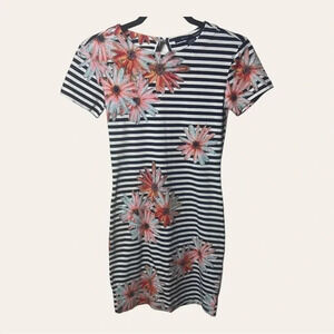 0440W. FRENCH CONNECTION SHORT SLEEVE DRESS MINI IN LENGTH FLORAL/STRIPES SIZE2