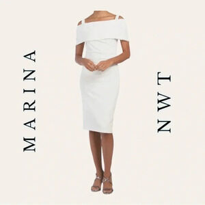 0446W. NWT MARINA DRESS MIDI LENGTH WHITE IN COLOR SIZE 8 OFF SHOULDERS