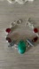 0465 Simulated Emerald Biwa Pearl Bracelet Handmade Silver Statement Jewelry