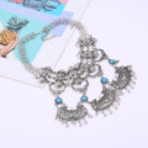 Exaggerated Tassel Necklace Bohemian Ethnic Vintage Turquoise Collarbone Chain