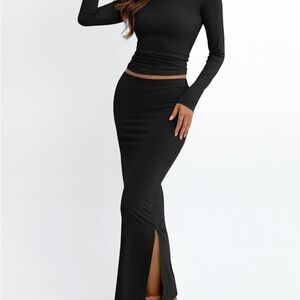 048 Trendy Queen | NWOT Set Black Long‑Sleeve Crop Top & Maxi Skirt (Size M)